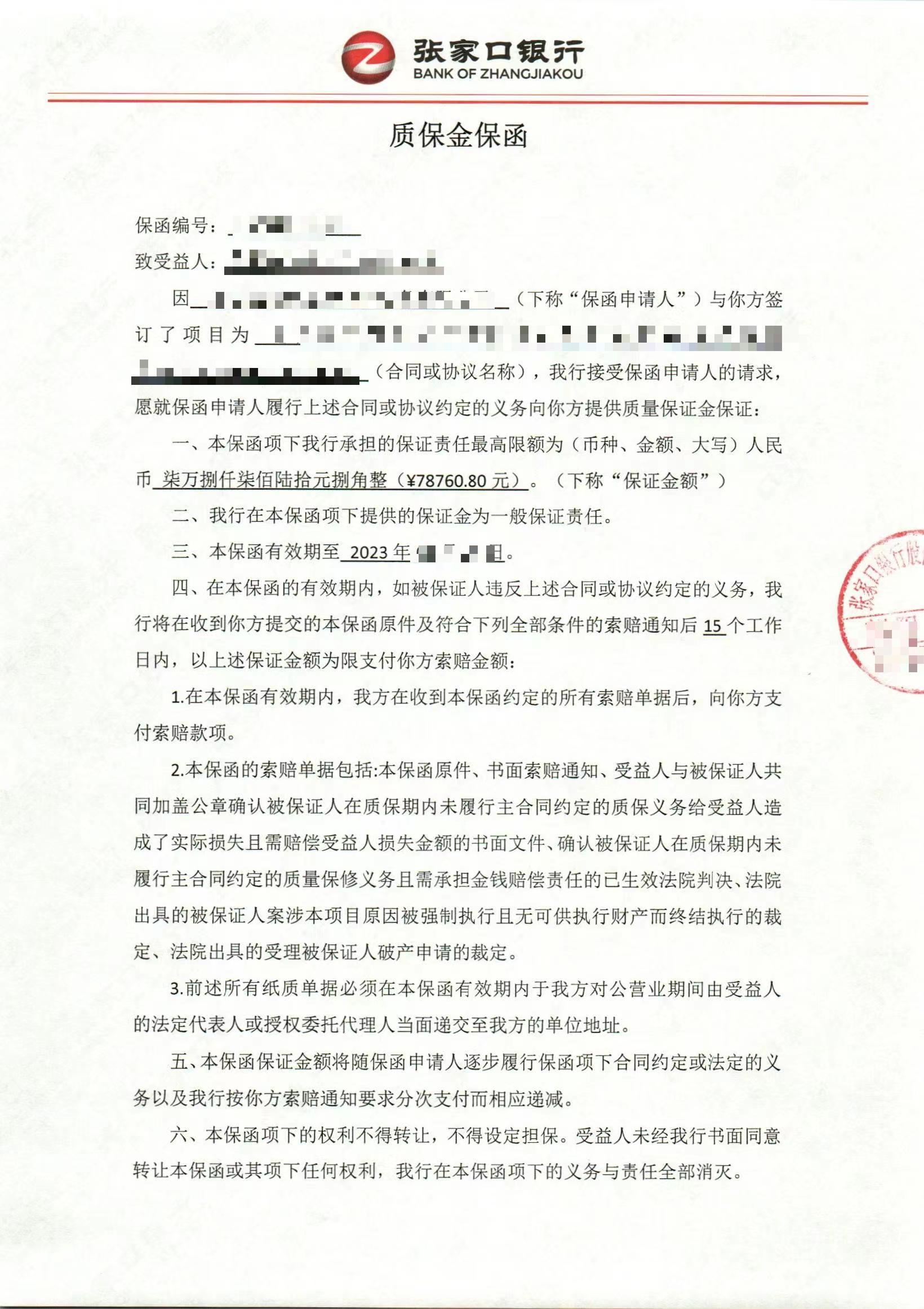 7.8万小金额银行质量保函