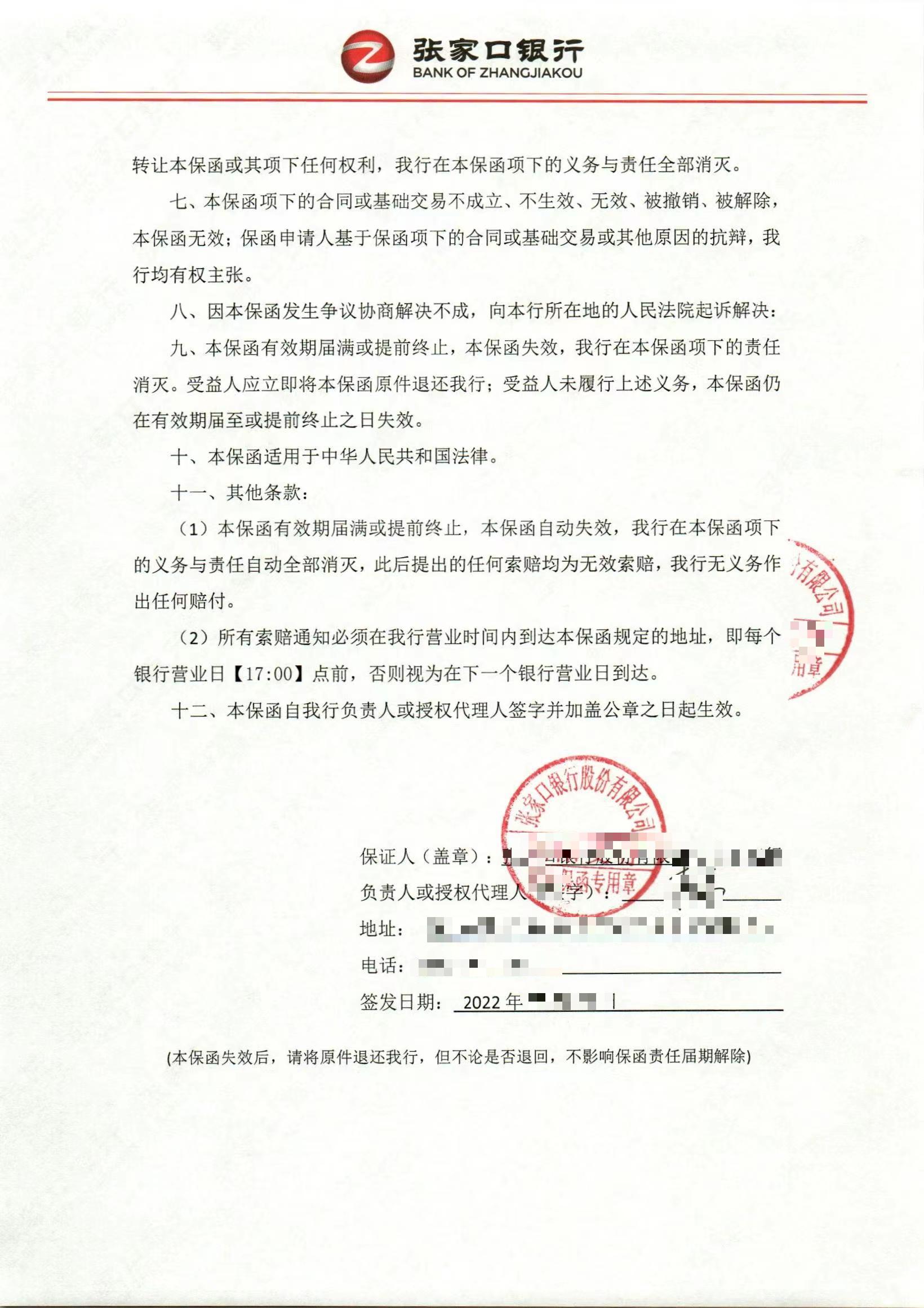 履约保函:由担保人为施工方(申请人)...